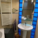 Along with a range of amenities such as an iron with ironing board and climate control, the interior features a flat-screen TV with satellite channels for a comfortable stay. The apartment is also furnished with a sofa set and a writing table. Here you'll find comforts like a separate toilet, a bath, and a shower. Moreover, there are towels as well.